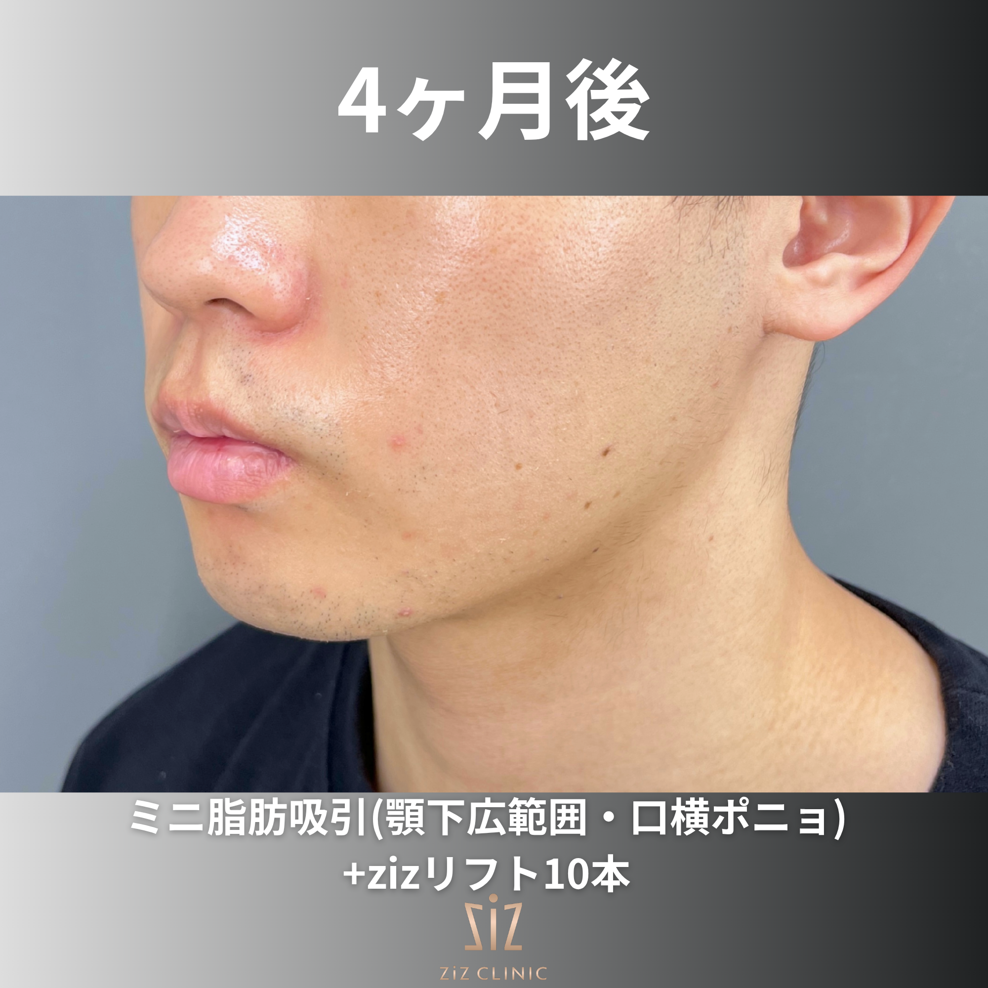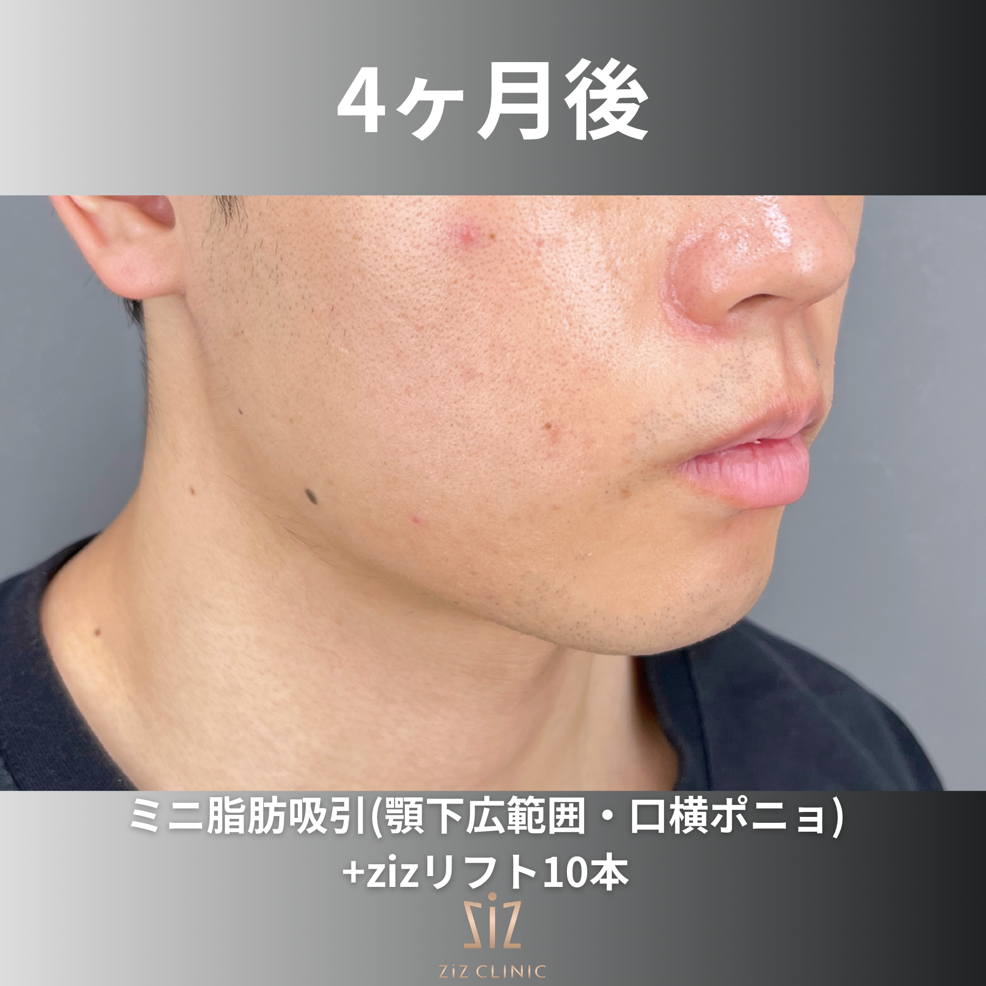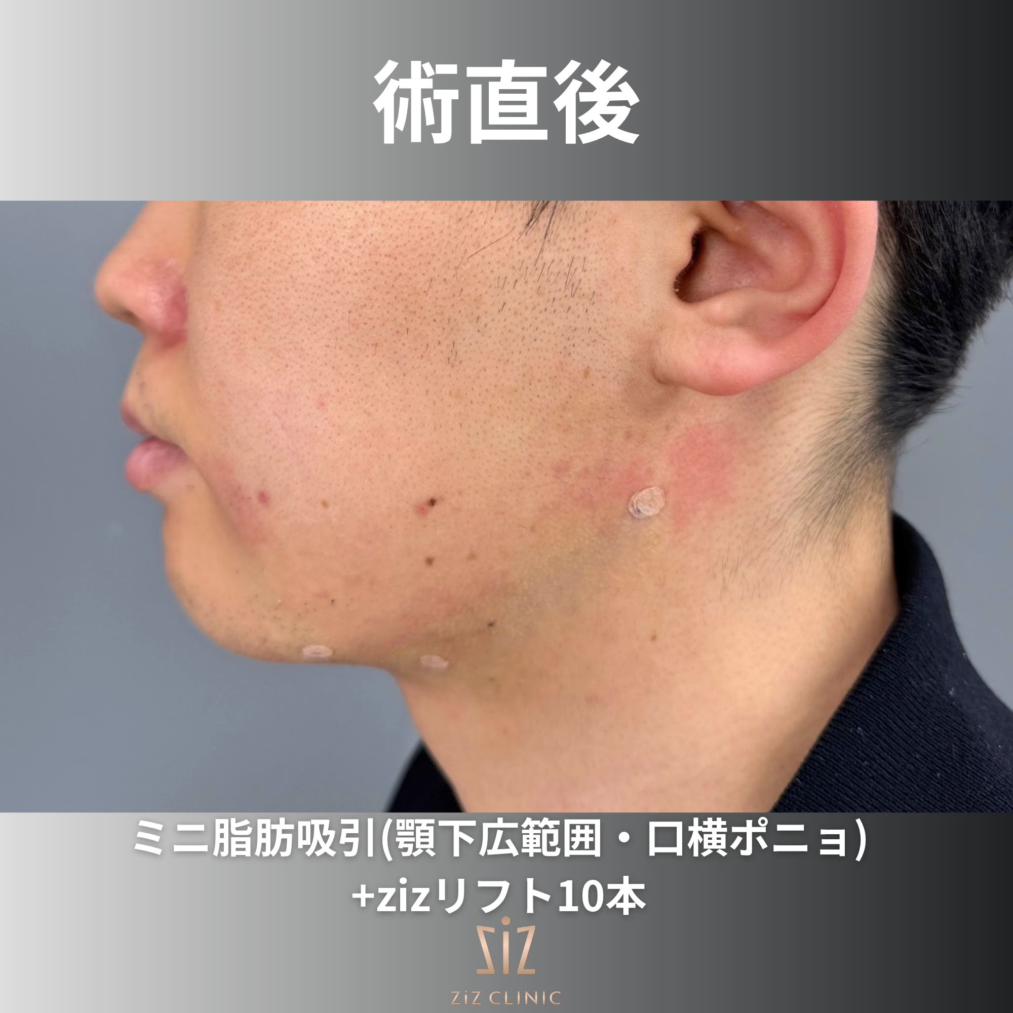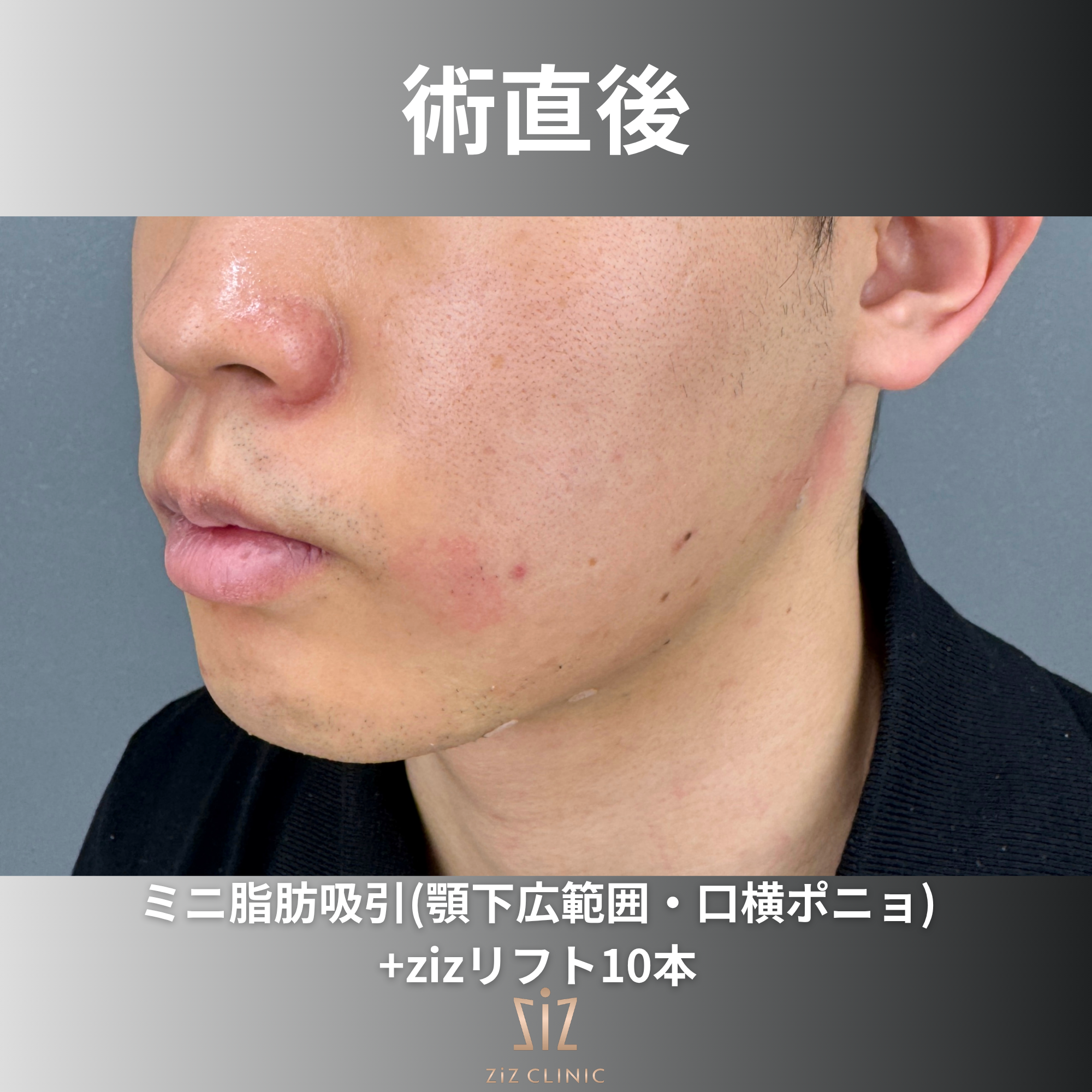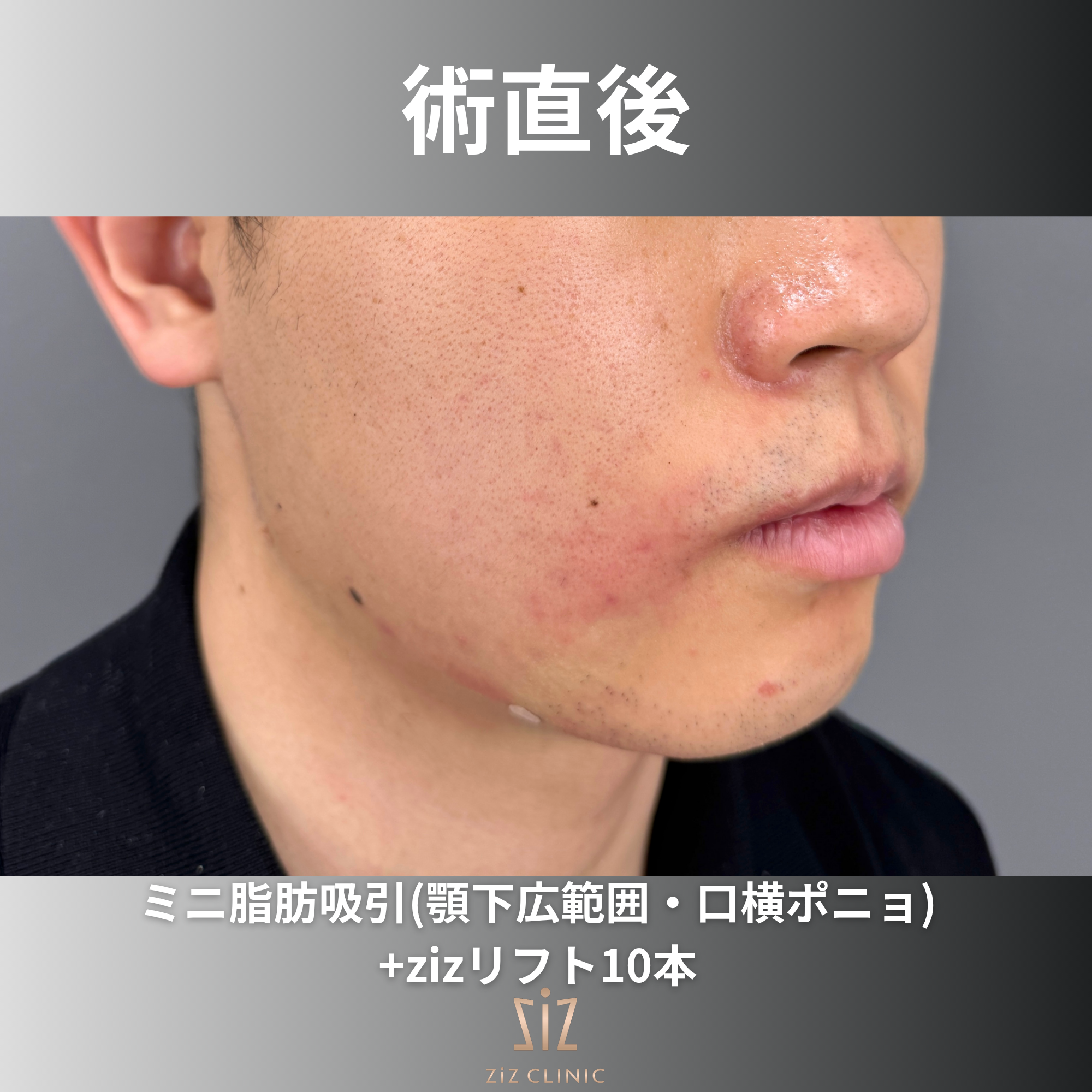 さらにサクションリフトでzizリフトを顎下に6本フェイスラインをピタッと形成し、4本を口横ポニョに併用して笑っても盛り上がりが出ないように整えていきます!
