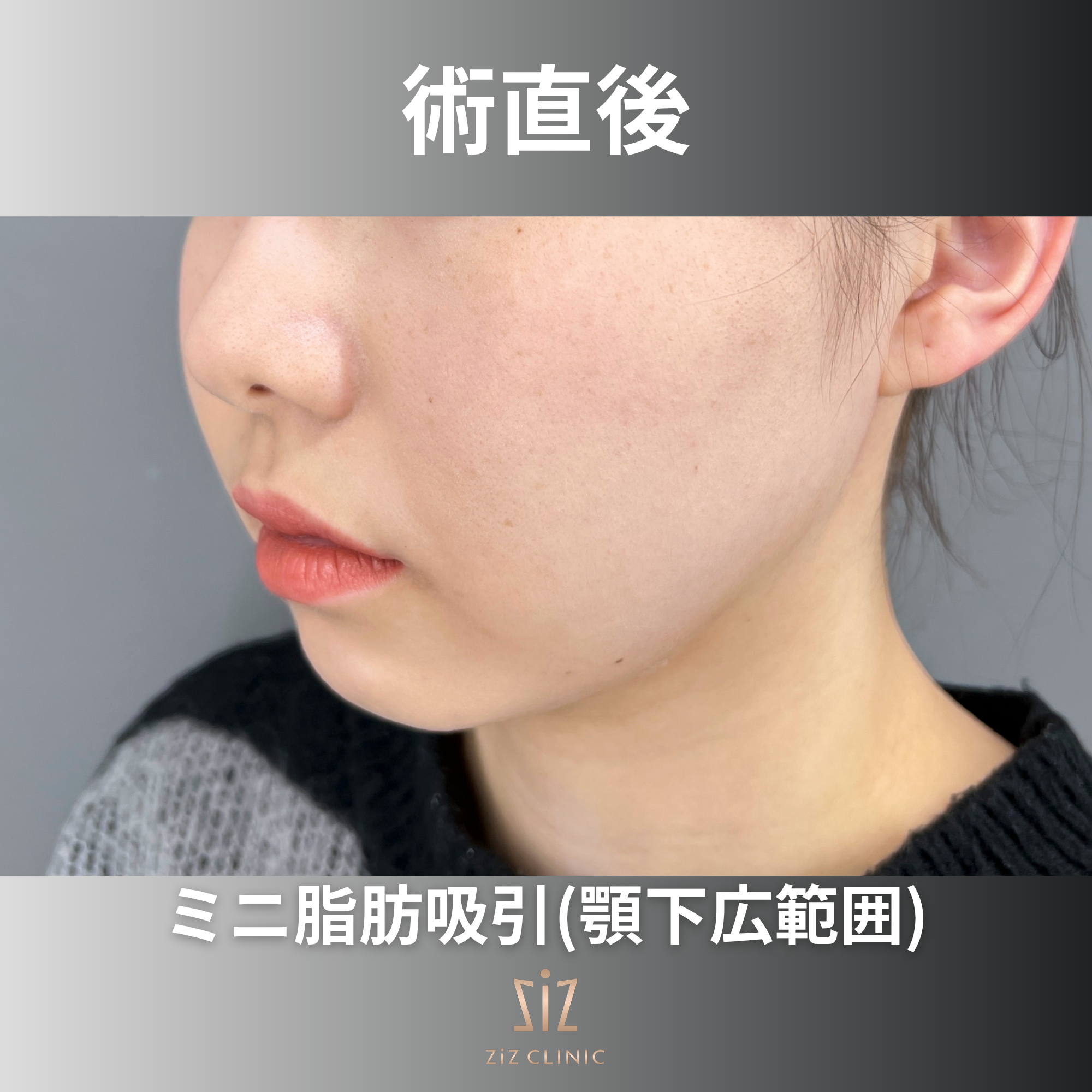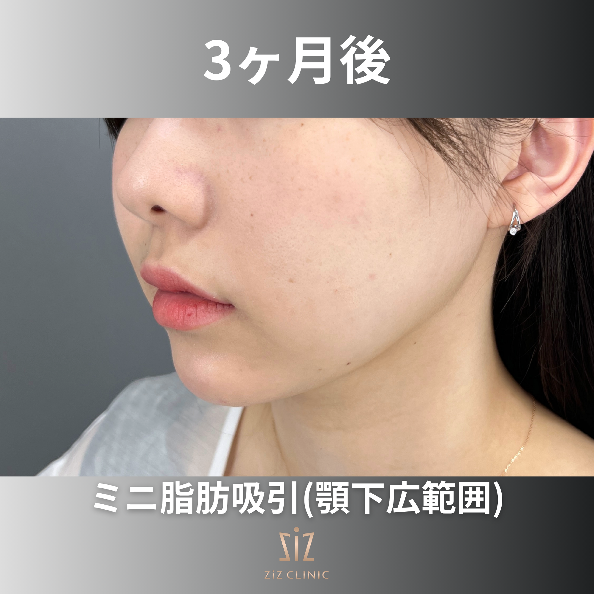 経過のインタビューでは「ダウンタイムもほとんどなく過ごせて、下を向いたときに二重顎にならなくった!」と嬉しいコメントをいただきました。