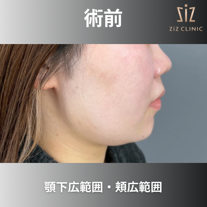 脂肪量がとても多い訳ではありませんが、横から見ると顎下の脂肪がフェイスラインに乗ってもたついている状態です。