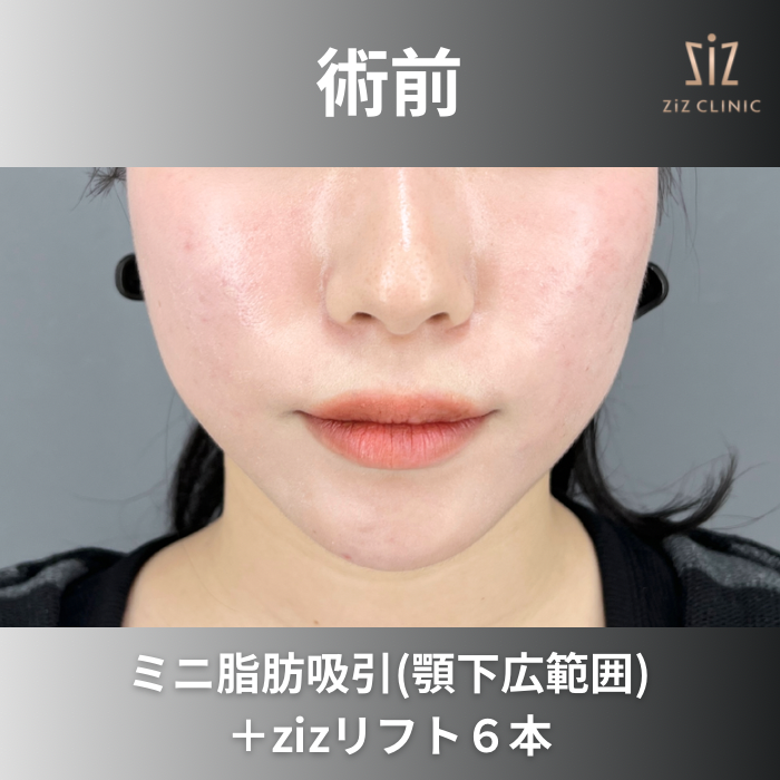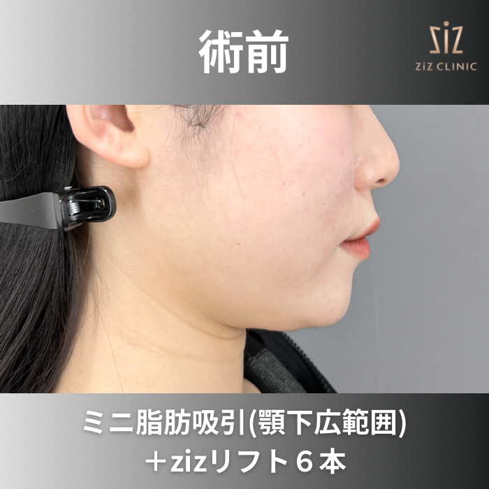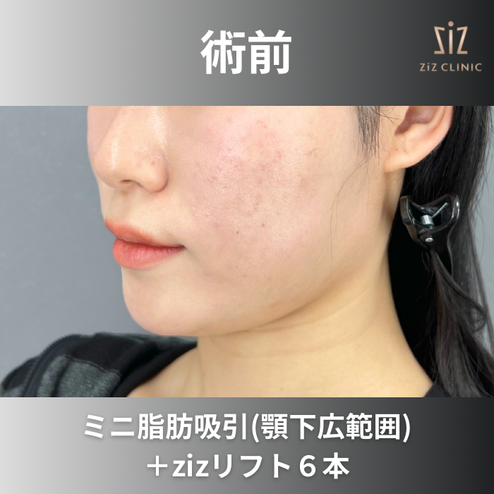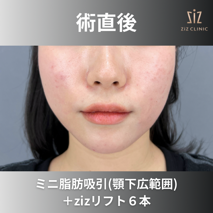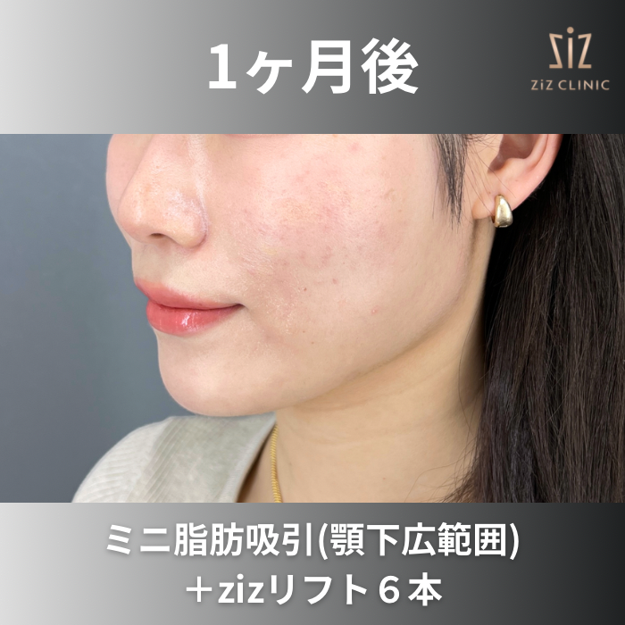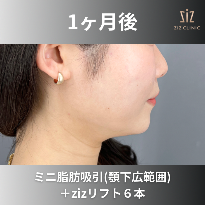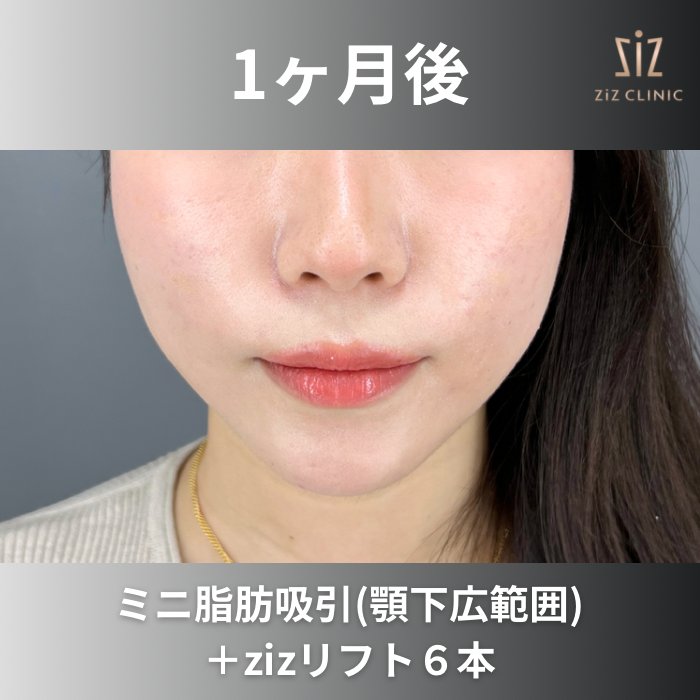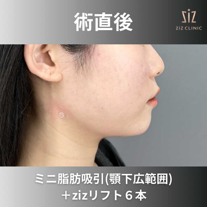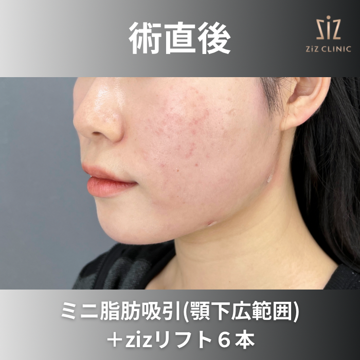 切らずに針穴から顎下の脂肪を取り除き、さらにzizリフト6本を併用してフェイスラインをピタッと整えていきます。