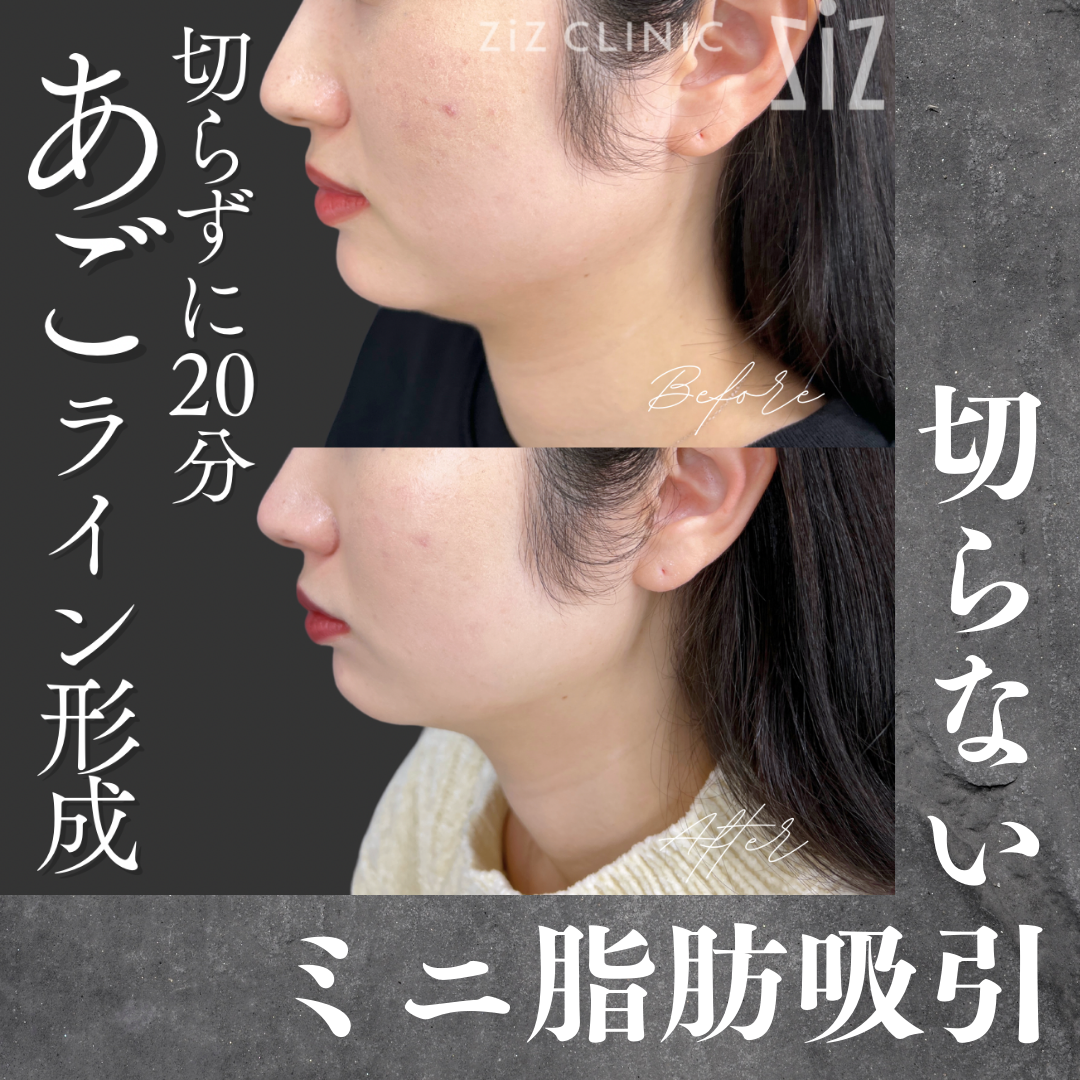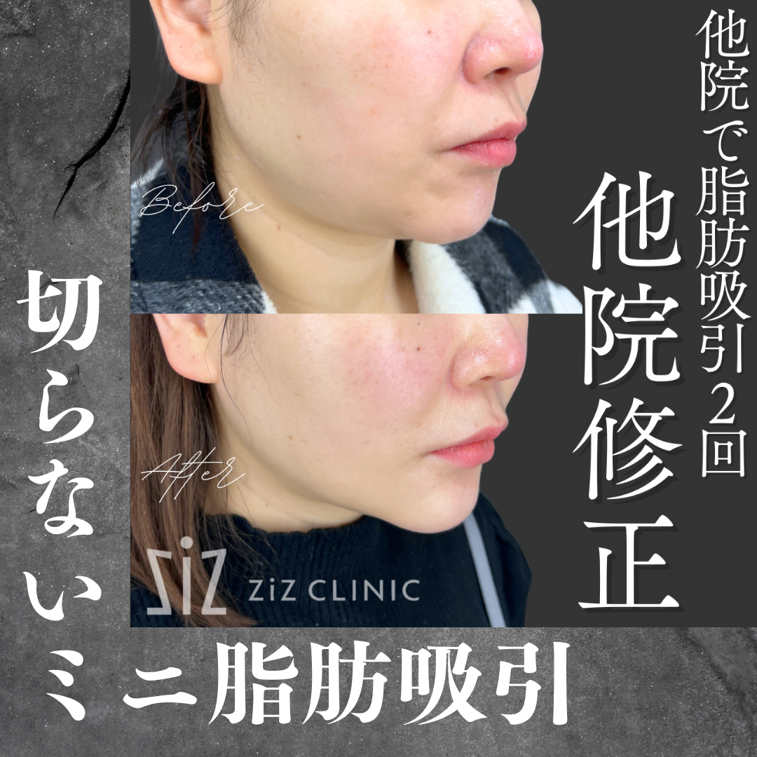 ダウンタイムが少ない施術をご希望だったのでミニ脂肪吸引で頬全体+口横ポニョの脂肪を取り除きzizリフトを併用するサクションリフトでジョールの段差をなくします!